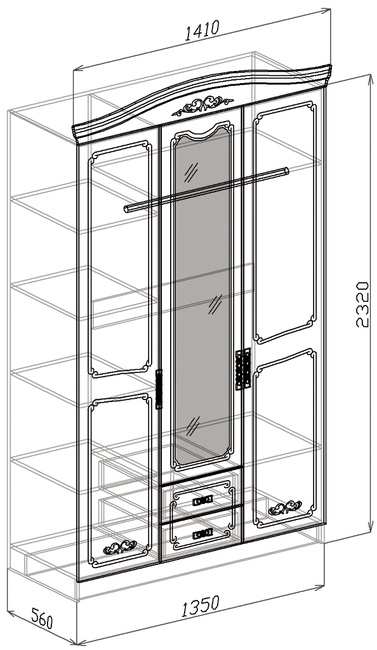 - Шкаф 3х дв. «Тиффани» Рельеф пастель